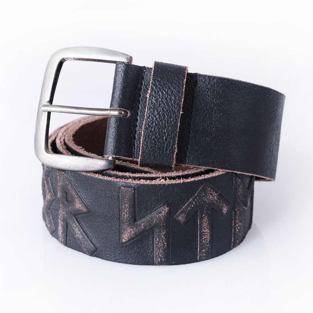 Hochwertiger Echtledergürtel im Usedlook mit erhabenem und geprägtem Thor Steinar in Runen-Schriftzug. 5 cm breit Material : 100% Lede