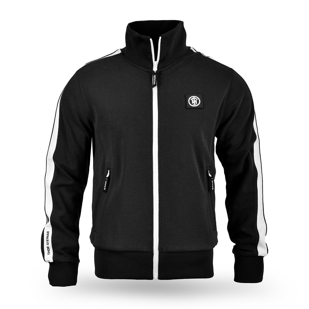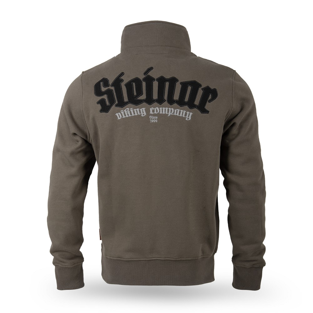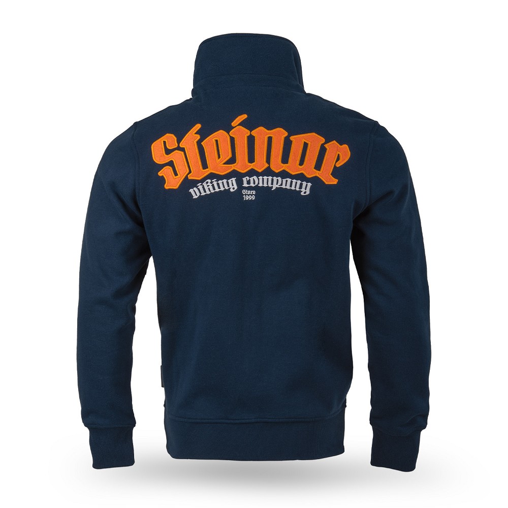 Hochwertige Sweatjacke mit hohem Kragen und Metallreißverschluss. Krageninnenseite mit Rippe; hochwertiges, mit Runen geprägtes Saumlabel aus Leder, angesetzte Belege an den Taschen, toller Arm-Patch aus Leder mit Runenmotiv und eingelassenem Thor Hammer aus Metall. Material: 70% Baumwolle, 30% Polyester