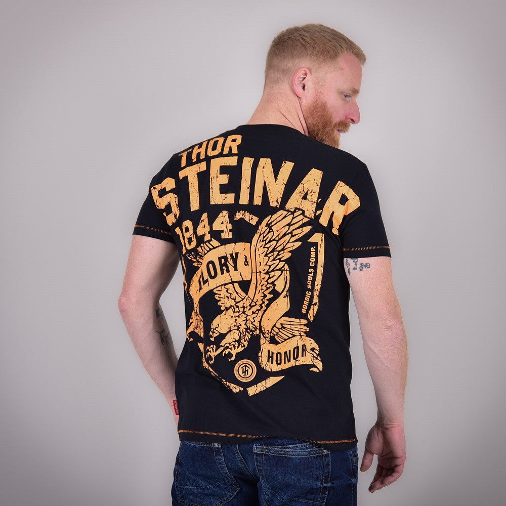 Eine klare Ansage für echte Kämpfer. Weit geschnittenes T-Shirt mit plakativem Frontdruck; Runen auf Druck auf dem Rücken; Kontrastnähte für Ärmel und Saum; dezentes Labeling. Material: 100% Baumwolle