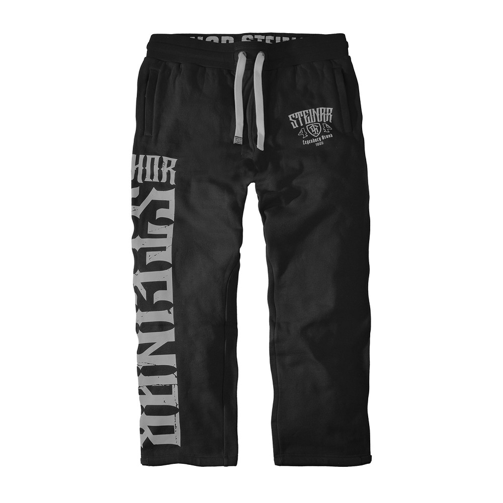 Our eye-catcher for Steinar fans: design combined with sportiness! Loose, sporty fit, eye-catching colour division, upper side pockets, one back pocket with zip, fixed elastic waistband with thick drawstring, adjustable leg ends, material: 100% cotton for black / 80% cotton / 20% polyester grey-melange